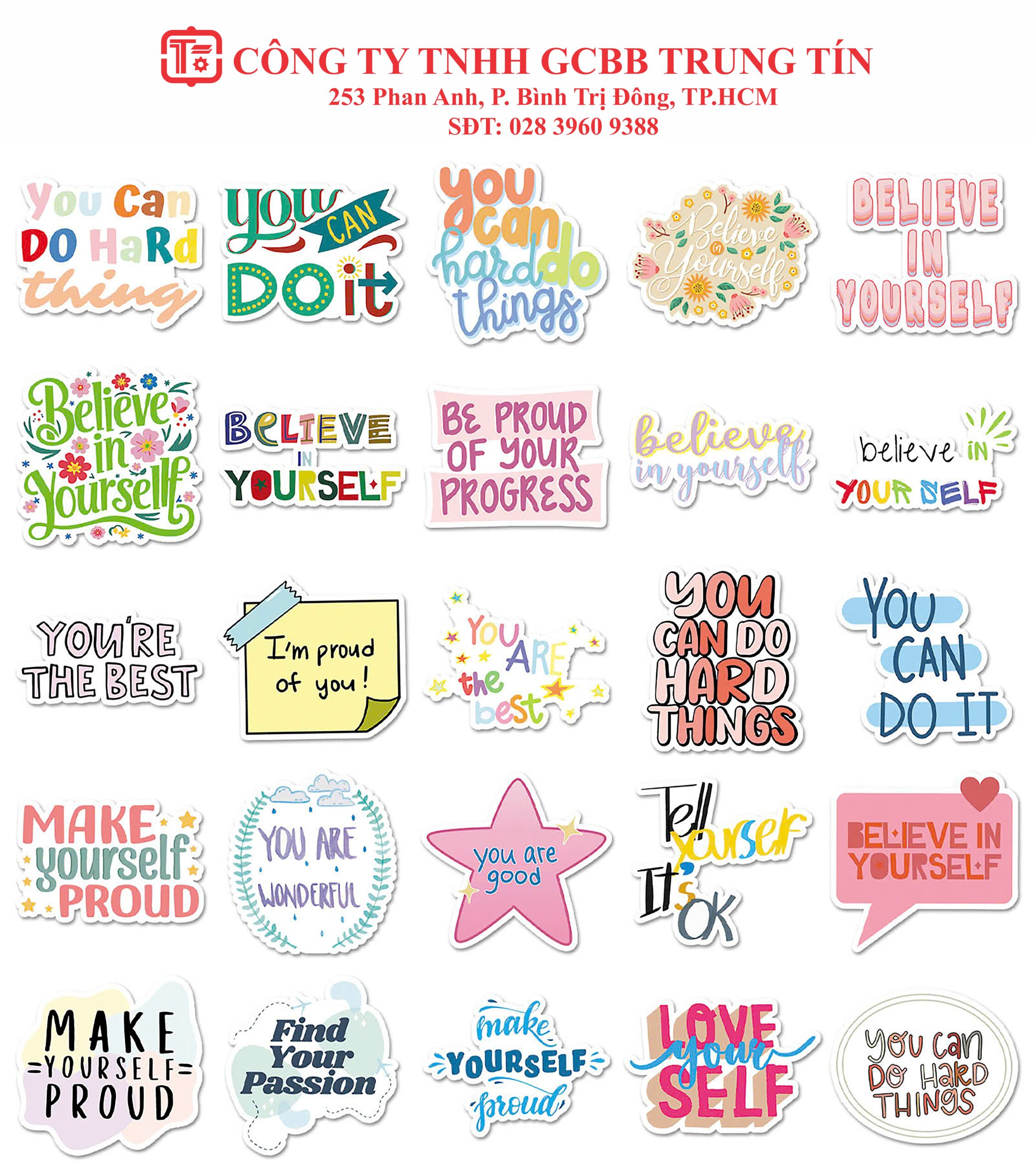 • Sticker Truyền Cảm Hứng: Các câu nói động lực, thông điệp tích cực với thiết kế font chữ nghệ thuật.