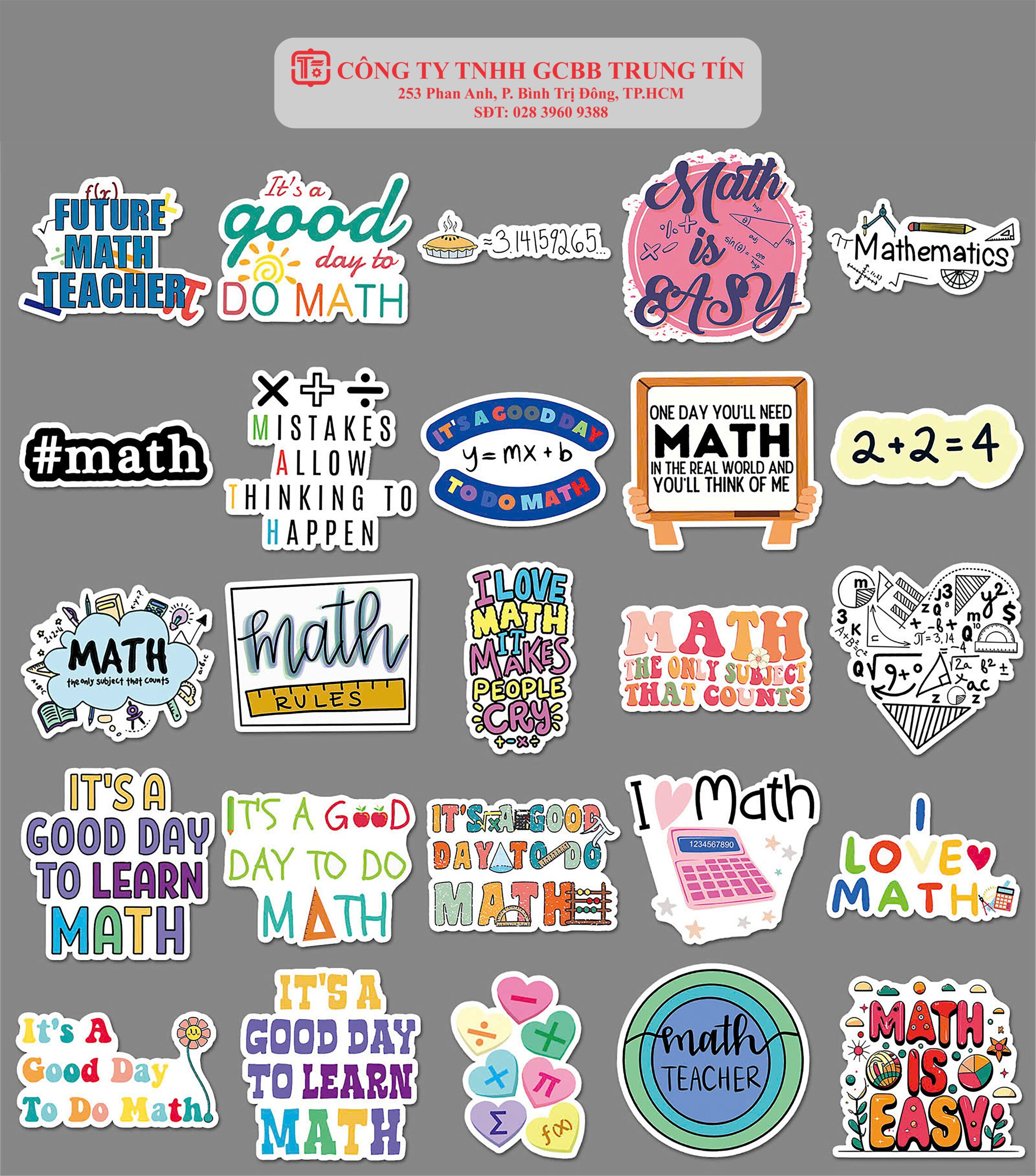 • Sticker Chủ Đề: Decal chủ đề Toán học hoàn hảo cho giáo viên, học sinh hoặc các trung tâm giáo dục.