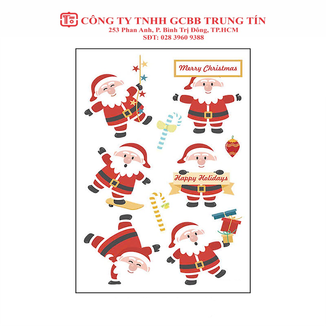 Bao Bì Trung Tín cung cấp dịch vụ In Decal Sticker Noel Theo Yêu Cầu với hình ảnh Ông Già Noel, Tuần Lộc, Cây Thông, và Vòng Nguyệt Quế cực kỳ sinh động và sắc nét!